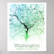 Modern poster shows tinted outline map of Washington, DC city layout with major streets, highways and bodies of water.