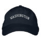 A Basic Adjustable Cap embroidered with the (customizable) text Washington. Select the hat and text color and style of your choice.