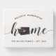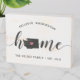 Show some home state pride with this cute wood box sign featuring "home" in black calligraphy script lettering with a silhouette map of the state of Washington standing in for the letter "O." A pink heart illustration inside the state map completes the design; you can change the position of the heart to your home city by opening the design tool and dragging the heart shape to your favorite spot. Personalize with your home city, family name and year established to create a perfect finishing touch for your entryway, or a memorable housewarming gift.