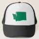 The shape of the state of Washington in a green based on the state flag. You can change the background color or add a custom souvenir text message.