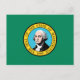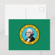 This design features the flag of the State of Washington, which is located in the Pacific Northwest region of the United States. It is named after George Washington (1732–1799), the first US president. Washington is often referred to as Washington State to distinguish it from the nation's capital, Washington DC. The flag depicts the state seal, which contains an image of state namesake George Washington, on a field of dark green. It is the only US state flag with a field of green; it is also the only state flag that contains the image of an American president.