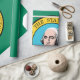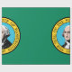 This design features the flag of the State of Washington, which is located in the Pacific Northwest region of the United States. It is named after George Washington (1732–1799), the first US president. Washington is often referred to as Washington State to distinguish it from the nation's capital, Washington DC. The flag depicts the state seal, which contains an image of state namesake George Washington, on a field of dark green. It is the only US state flag with a field of green; it is also the only state flag that contains the image of an American president.