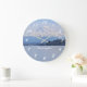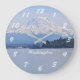 Decorate a living space with this stylish wall clock with white numerals and features a scenic, landscape photo image of majestic Mount Rainier and the blue waters of Puget Sound, Washington. Select your clock style and size.