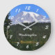 Decorate a living space with this stylish wall clock with white numerals and features the scenic photo image of a Washington State icon, majestic Mount Rainier. Select your clock style and size.