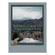 A digital painting of the landscape around Mount St. Helens. This is not an actual scene. Mount Hood peeks over from Oregon in the background. Mount Rainier enters the scene at the bottom. There is a blue border with a pair of red apples. The statehood year is in the top right corner, 1889. In the center, the white text reads: "Washington State", "For you and me, a destiny", "Alki". Image Copyright ©2023 Kimberly J Tilley.