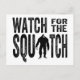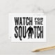 Grunge distressed style, large blocky letters warn other bigfoot hunters to Watch for the SQUATCH! A sasquatch creature himself is standing in the place of the A. Cool, simple black and white image works well on light, bright or medium dark colored apparel.