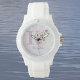 I was pleasantly surprised by the good quality of this watch. It's an easy size to wear on a small wrist and both the band and the watch are well made. I also liked the translucent case the watch is packaged in. The printing is crisp and clear and shows off my Create With Photos oyster flower design well.