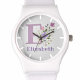 Designed for those with a Christian name starting with the letter 'E,' such as Elizabeth, this watch offers a wonderful opportunity for individuals to showcase their individuality and personal style. The first initial is beautifully integrated into the watch face, serving as a subtle yet distinct identifier of the wearer's name. The accompanying sprig of flowers, painted with meticulous attention to detail, enhances the overall aesthetic with a soft and enchanting touch.