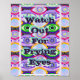Graffiti style eyes in pastel colors with the text watch out for prying eyes, perfect themed decoration for a futuristic dystopian cyberpunk world where paranoia is the new normal.