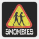 Cool and funny design featuring a sign with two walking people watching at their smartphones like zombies and the quote "Watch out Smombies".