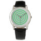 Customisable watch with colourful circular design with different bright colours in circles concentric on the face of the watch.