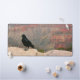 A raven stands at the edge of the Grand Canyon along Desert View Drive, overlooking layers of rock stretching into the distance. The contrast between the dark foreground and the vast canyon landscape captures a quiet moment on the rim.