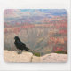 A raven stands at the edge of the Grand Canyon along Desert View Drive, overlooking layers of rock stretching into the distance. The contrast between the dark foreground and the vast canyon landscape captures a quiet moment on the rim.