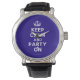 Based on the original Keep Calm and ... poster this cream and blue Keep Calm and Party On Watch features a custom designed font that matches the original closely.