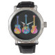 Contemporary, colorful GUITAR DESIGN in a sixties inspired, retro pop art style. Three string instruments of the rock, jazz and pop persuasion for musicians, guitarists and music lovers.
