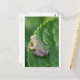 A tree frog perches on the leaf of a plant in the early evening.