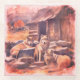 Watching time move on, is about some wolves sitting and laying by an old beat up cabin out in the wilderness the is a bit of Retro in this artwork on this glass coaster.
