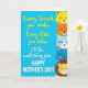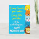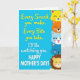 This greeting card features a bright cyan-blue background that feels like a cheerful stage for a funny, affectionate Mother’s Day message ❤️. On the left side, the line “Every Snack you make, Every Bite you take,” appears in a hand-drawn look with sunny yellow letters that stand out clearly. Beneath it, the phrase “I’ll Be watching you HAPPY MOTHER’S DAY!” is set in rounded white lettering, with “HAPPY MOTHER’S DAY!” larger and more attention-grabbing. Along the right edge, five simple animal faces are stacked vertically as if they’re peeking in, adding a friendly “keeping an eye on you” joke. Each face has a gentle closed-eye smile, rosy cheeks, and a calm, caring expression that suggests a sweet bond between parent and child 🌼. Their colors shift from warm yellow and orange to lighter blue tones, ending with a golden face with a brown mane at the bottom. The animals sit tight to the border, forming a neat column that frames the text on the opposite side.