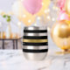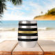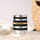 Classy black and white stripes with a gold stripe accent. Customizable simple monogram and name.