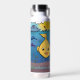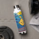 The bottle looks even better in real life. The ice cubes I put in lasts all day! I have my bottle with me all the time. It's summer and having something cold to drink feels amazing. With this bottle I always have something super cold. I have only tried the hot drink once and it lasted a long time as well. The color blue is a navy blue and the white printed on it is vibrant. It printed perfectly. I love my personalized smile water bottle.