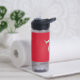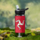 Crafted with meticulous attention to detail, this water bottle is more than just functional; it's a celebration of Manx heritage and cultural identity. The bold design proudly showcases the iconic triskelion (three armored legs with spurs) against a red background, symbolizing the island's rich history and unique symbolism.