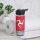 Quench your thirst with a splash of Isle of Man pride using our exclusive water bottle featuring the flag of the Isle of Man!