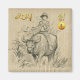 Wash painting style of a water buffalo with a child holding a book in his hands, original painting by RB on Vietnamese handmade textured paper (image printed) + "Year of the Ox" and small golden round for the ideogram of the OX. Design on square refrigerator magnet. Available with other original painting of RB. Matching greeting card, holidays postcard, invitations, craft supplies, party supplies (soon). Perfect for Vietnamese New Year of the Ox 2021 or birthday (people born in Ox Year).
