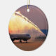 This round porcelain ornament features the welcoming of precious cargo to Washington, D.C., in the way of World War 2 veterans. The Honor Flight Network makes this trip possible for vets from all over the country to come to our nation's capital and see the memorial built in honor of their service, as well other military landmarks such as Arlington National Cemetery. A short explanation is on the back of the ornament in easy-to-read font.