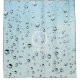 Shower curtain with water drops image and customizable logo and text.