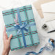 A stylish plaid in aqua blue and chocolate brown, to add that certain flair to your packages.