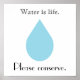 Water conservation poster. Picture of a water drop. Water is life. Please conserve.