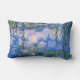This lumbar pillow features a painting of water lilies from a series of over 200 oil paintings by French Impressionist Claude Monet. This painting, completed in 1919, features shades of blue and pink.