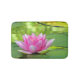 This elegant floral bath mat features an exquisite pink waterlily lotus flower resting on circular green lily pads. Luminous golden water reflections glow between the pads of this lovely pond. A great idea for gardeners!