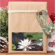 A blooming water lily pokes out of the water among the pads waiting for a resident frog or dragonfly. Customize for a summer greeting, picnic or gathering.
