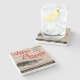 Limestone coaster featuring the cover art for the Water Margin Podcast.