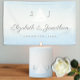 Blue watercolor depiction of the water meeting the sky. Custom monogram with sailboat