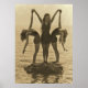 Three girls, wearing bathing suits, posed on rock in the ocean. The center girl stands straight up and holds a hand of each of the girls, on either side, who are leaning backwards. From an original 1922 photo by Burgert Bros. All Rights Reserved © 2012 padre art