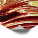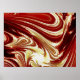 An abstract art design of swirling river water with red, gold and white colours.
