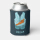 Create a personalized gift that's perfect for water-skiers and water sports enthusiasts. This can sleeve or can wrap is perfect for sipping your favorite beverages while out on the lake. It features an illustration of a water-skier in orange, light blue and teal blue set in the shape of a life jacket vest. Below is a spot to add a name in coordinating light blue. The illustration and name appear on both the front and back.