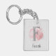 Pretty Initial / Monogram design features silver glitter letter F with abstract watercolor pink background and customizable text to add name or other message.