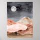 Watercolor abstract night moon desert landscape. Hand-painted illustrations. Nature minimalist poster for interior wall art designs.