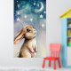 Watercolor adorable bunny rabbit, a serene watercolor painting of a small, adorable bunny rabbit gazing up at the night sky. The rabbit's eyes are wide with curiosity and wonder, reflecting the shimmering stars. The background is a beautiful canvas of twinkling stars, with a hint of a crescent moon. The colors are soft and gentle, creating a tranquil and dreamy atmosphere.