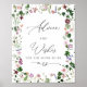 A watercolor advice and wishes poster sign is a breathtaking piece of art that captures the romance and beauty of a bride-to-be's special day. The soft, delicate hues of the watercolor create a dreamy atmosphere, transporting viewers to a world of natural wonder. The intricate details of each flower and leaf are lovingly rendered, bringing to life the intricacy and beauty of nature. The colors blend seamlessly, giving the poster a soft and romantic quality, perfect for a bridal shower celebration.The elegant calligraphy, adds a touch of sophistication to the design. The flowing script beautifully complements the organic shapes of the botanical illustrations, creating a perfect balance between nature and human expression. The Advice and Wishes message on the poster adds a meaningful touch to the design, inspiring guests to share their heartfelt thoughts and aspirations for the bride-to-be. It is a beautiful reminder of the power of love and friendship, and the importance of supporting one another on life's journey. See full collection here: https://www.zazzle.com/collections/elegant_spring_floral_collection-119460468652902871