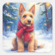 Watercolor Airedale Terrier Snowy Christmas Square Sticker