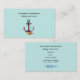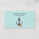 Business cards with a sailing motif. A watercolor design of a pink anchor with a metal look. An aqua green rope wraps around it, with a seashell conch sitting at the bottom. Set on a pale aqua green background. Nice business card template design for those with "anchor" in their business name or those in sailing, diving or other nautical themed businesses and professions.