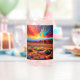 Custom designed can glass style featuring beautiful watercolor style image of the Arizona desert landscape at sunset, on the front and the back of the glass. Handwash recommended to preserve the image on the glass. Image color may vary on different viewing screens.