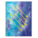 Purple and blue watercolor notebook journal, sketchbook with yellow arrows design.