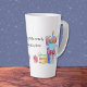 This pretty latte mug with the watercolor illustration of a blue cup with pencils , a pen and paintbrush , two books a red apple and little daisies would make a lovely gift for educators . Personalize it with your favorite .