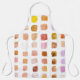 This apron is decorated with a pattern of samples of watercolors in shades of terracotta and rust.