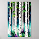 Beautiful AI generated digital watercolor features a grove of white aspen trees. Wall art for tree / nature lovers of all ages.
